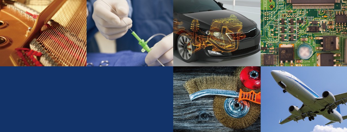 ・医療用材及び医療用備品 ・電機、通信、機械 ・環境(プラント関係) ・海洋土木、建築 ・装飾、アウトドア及びスポーツ用具 ・食品器具 ・メガネ及び時計バンド ・自動車部品 |